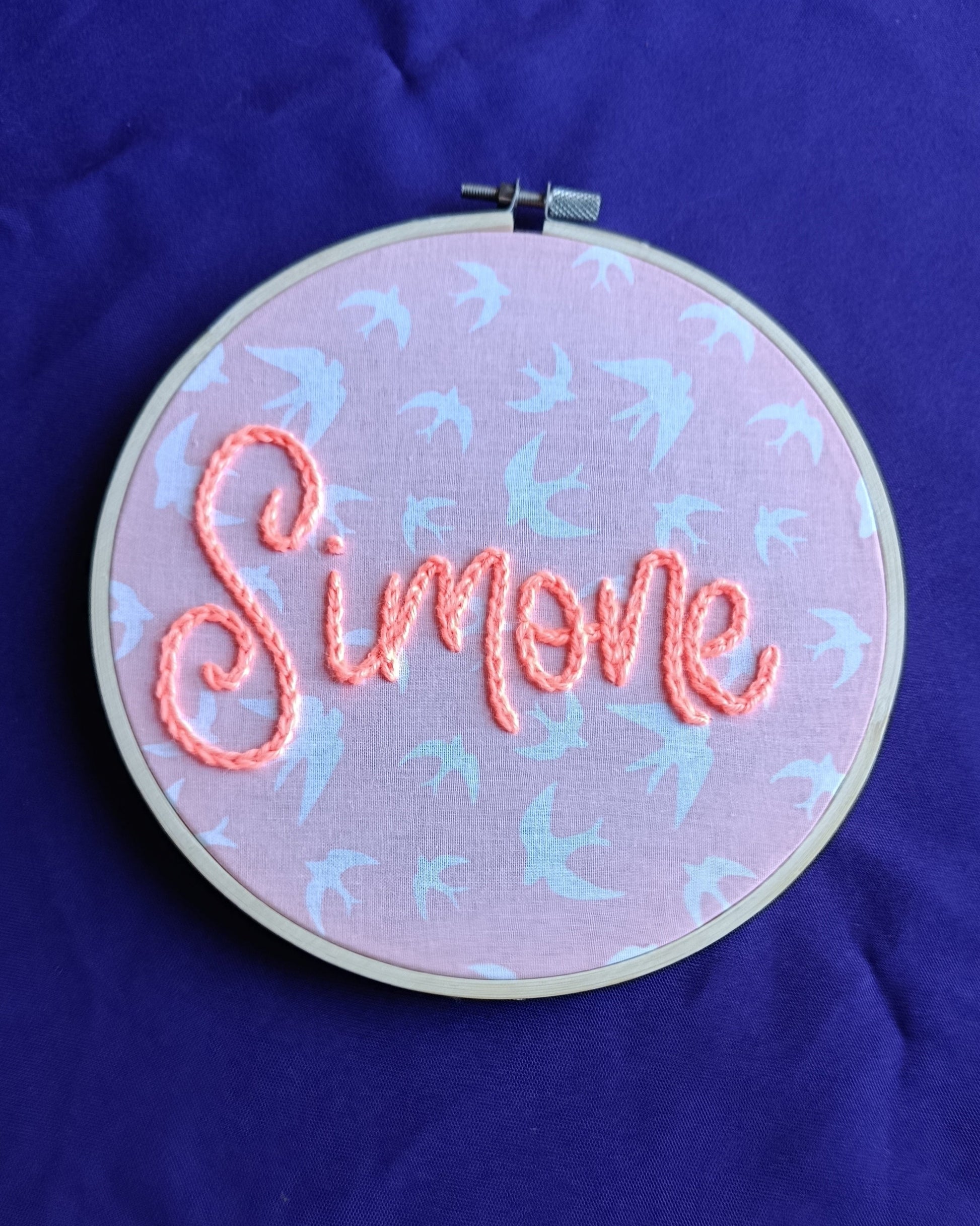 Un mot doux, un prénom, une devise secrète… et voilà que vos mots prennent vie sous forme de broderie. Je réalise pour vous un tambour brodé unique, entièrement fait main, où chaque lettre s’entrelace au fil de vos envies.